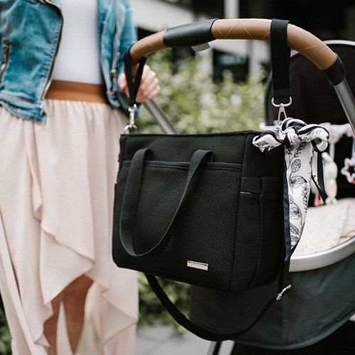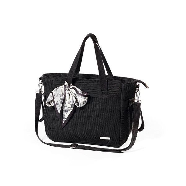 • Stílusos megjelenés: Elegáns fekete színben, virágmintás sállal díszítve – minden ruhadarabhoz illik, babakocsival vagy anélkül is hordható.