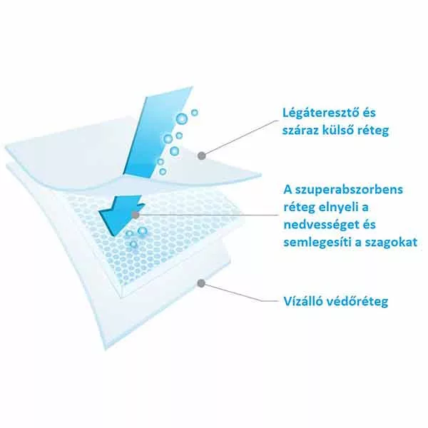 40 x 60 cm-es méretének köszönhetően alkalmas a gyermekágyi időszakban az anyuka lepedőjének védelmére is. Finom puha béléssel rendelkezik, a felső rétege lélegző az alsó réteg megköti a nedvességet. Extra nedvszívó réteggel rendelkezik. Egy csomagban 10 db található.