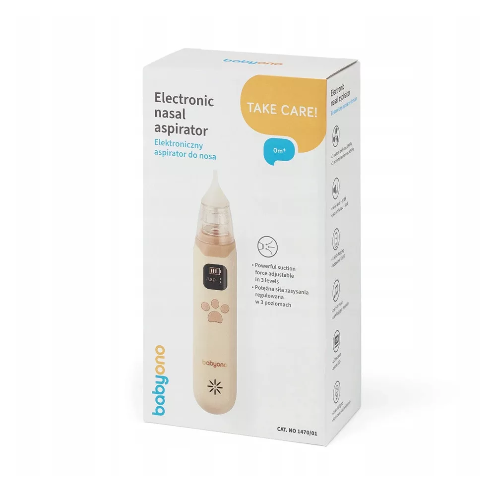 A BabyOno elektronikus orrszívó hatékony és kíméletes megoldást nyújt a makacs orrváladék eltávolítására, hogy a baba könnyebben lélegezhessen. A készülék nagy szívóerejének, csendes működésének és nyugtató dallamainak köszönhetően a tisztítás gyors, biztonságos és stresszmentes. Ergonomikus kialakítása és könnyű súlya miatt otthon és utazás közben is ideális választás. A higiénikus használatot az egyszerű szétszerelhetőség és tisztíthatóság biztosítja.