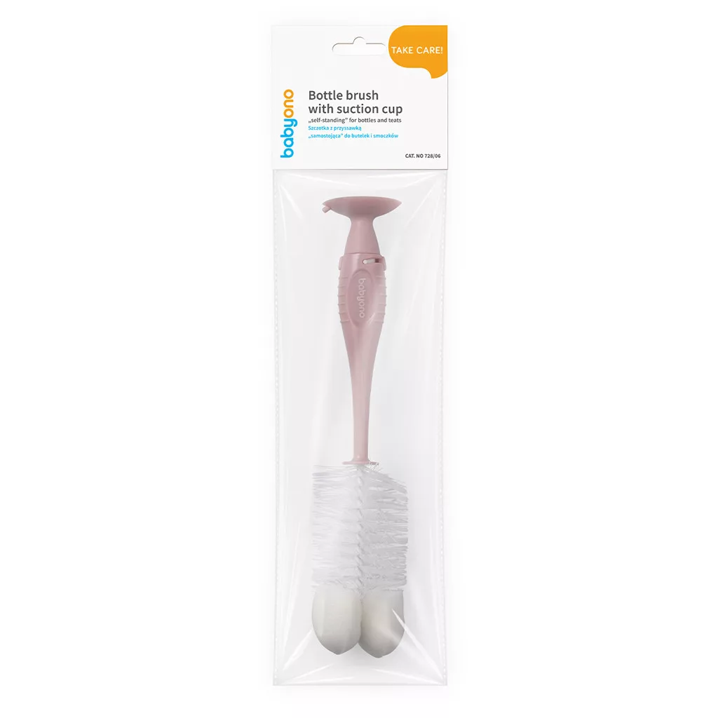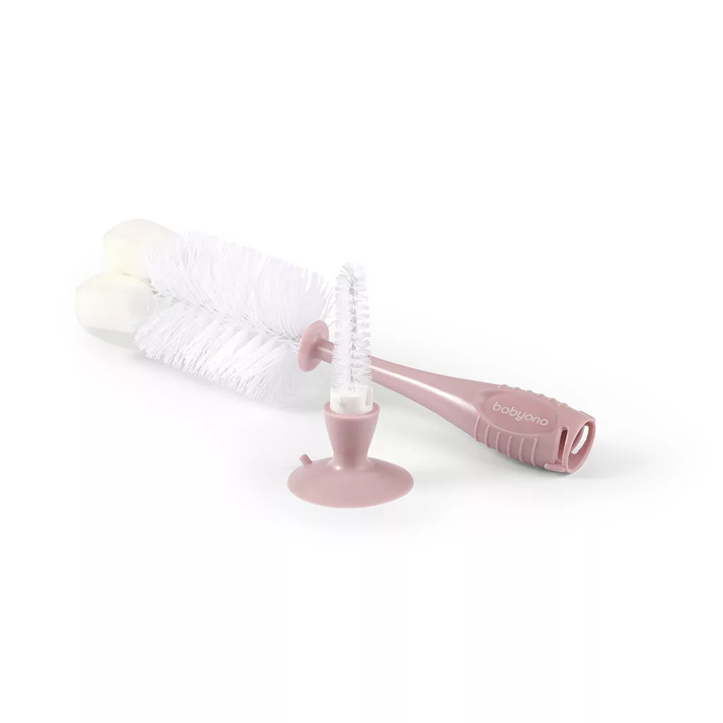 BabyOno Rózsaszín Cumisüveg- és Cumikefe Tapadókoronggal - Stabil és Alapos Tisztítás Babakellékekhez
