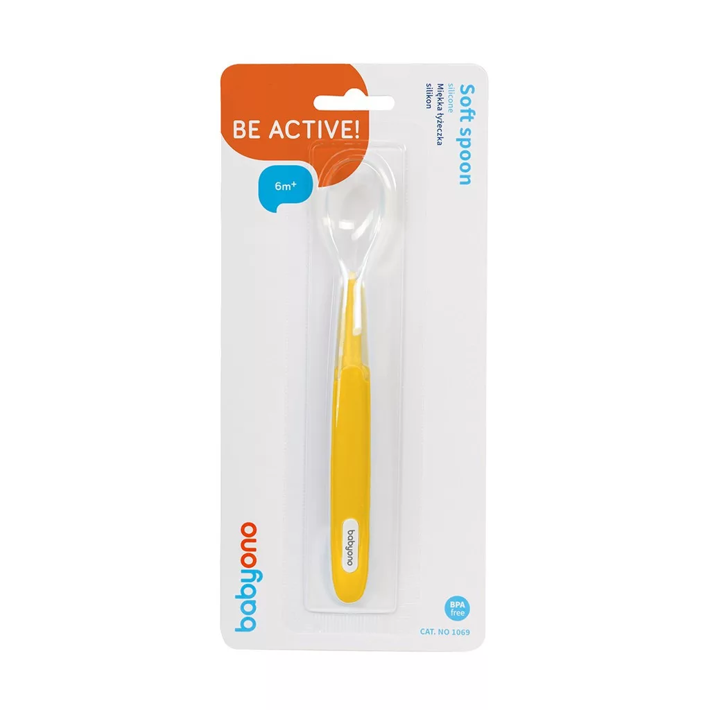 BabyOno Sárga Puha Végű Szilikon Kanál 6 Hónapos Kortól - Kíméletes Első Falatokhoz