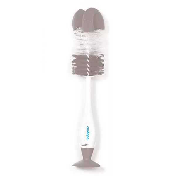 BabyOno Szürke Cumisüveg- és Cumi Tisztító Kefe 2 az 1-ben Tapadókoronggal - Higiénikus Mosogatáshoz