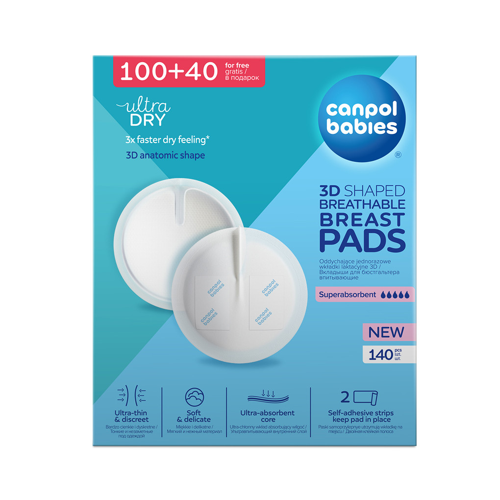 A Canpol Babies egyszer használatos, légáteresztő melltartóbetétei kifejezetten a várandósság későbbi szakaszában lévő nők és a szoptató édesanyák számára készültek. A puha, bőrbarát felület nem irritálja a mell érzékeny bőrét vagy a mellbimbókat, miközben hatékonyan felfogja a kifolyó tejet. A vízálló külső réteg megakadályozza a fehérnemű átnedvesedését, így egész napos frissességet és biztonságot nyújt. A betétek diszkrét kialakításúak, tökéletesen illeszkednek a mell formájához, és minden darab külön csomagolt a maximális higiénia érdekében. A 100+40 darabos kiszerelés gazdaságos és hosszú távra elegendő.
