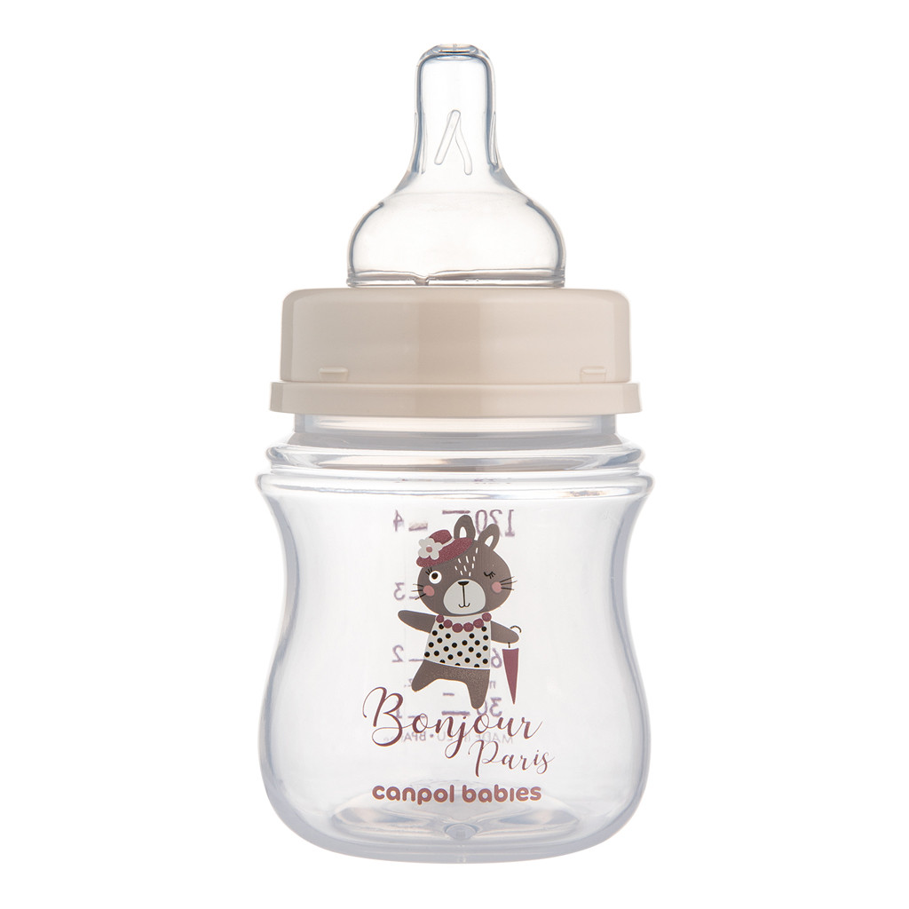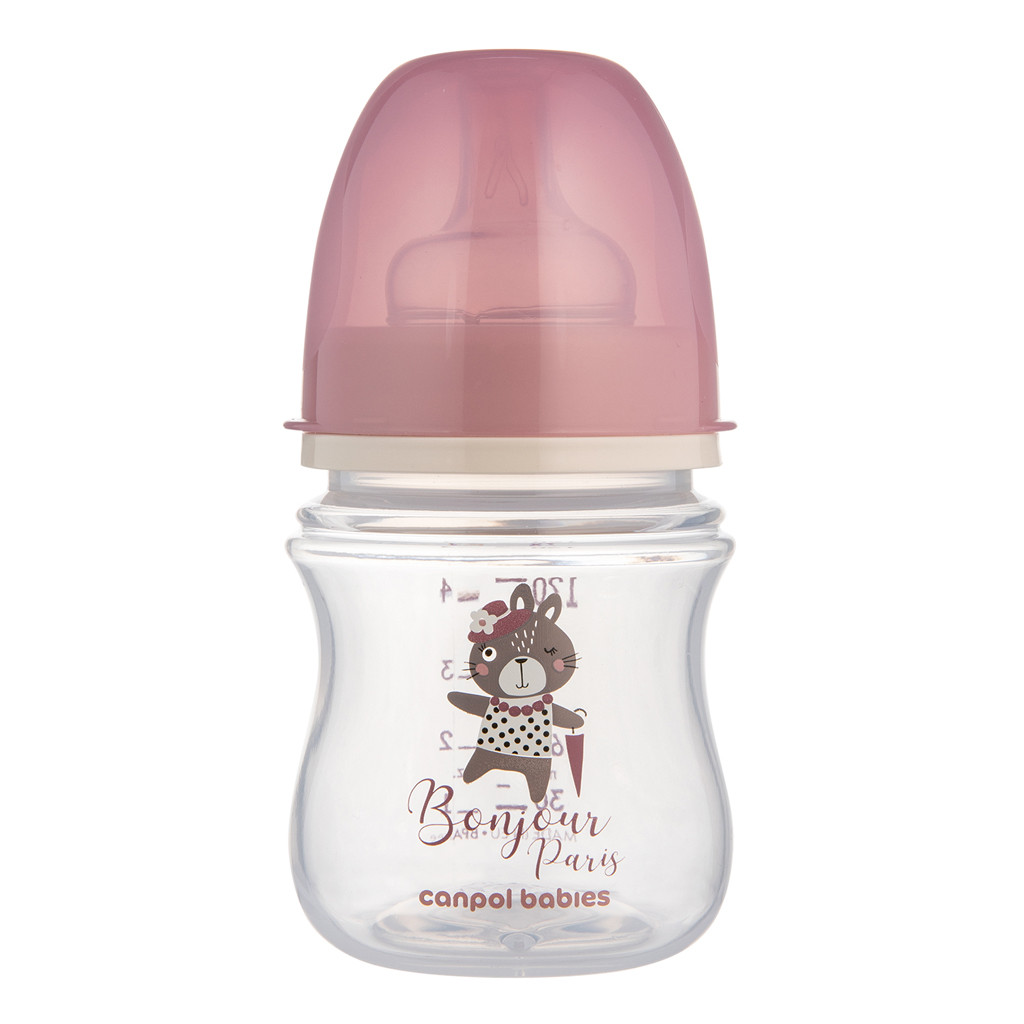 Canpol Babies Babies Széles Nyakú Cumisüveg Bonjour Paris 120ml Rózsaszín - Kényelmes Etetéshez és Kevesebb Levegőnyeléshez