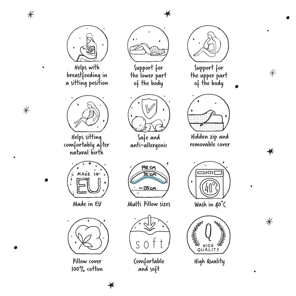 Ceba Baby Szoptatós Párna Cebuska Multi Jersey Szürke Csillagok 190cm - Kényelmes Támasz Szoptatáshoz és Pihenéshez