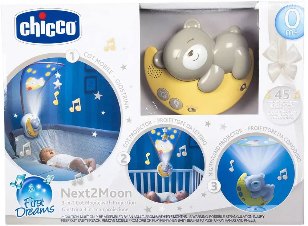 Chicco Next2Moon 3 az 1-ben Zenei Projektor Kiságyra - Univerzális Felszerelés Next2Me-hez is, Semleges Színben