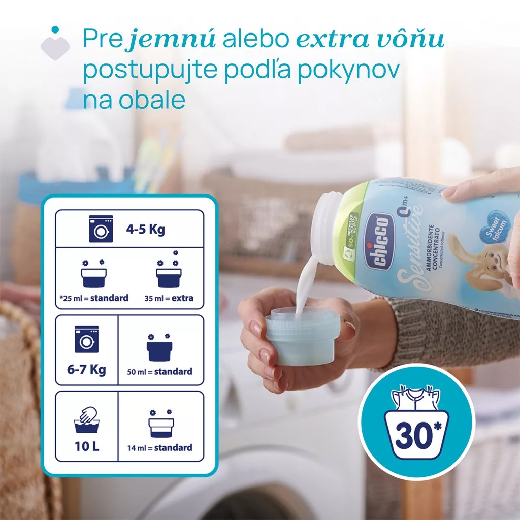 Chicco Öblítő Koncentrátum Édes Púder 750ml - Puha Ruhák, Kímélő Ápolás és Tartós Illat