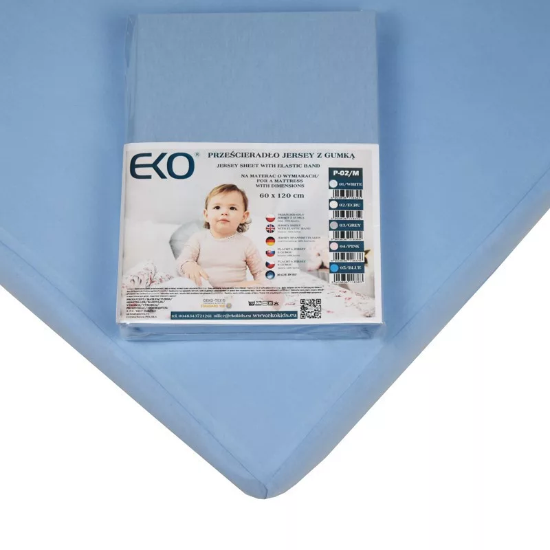 EKO Gumírozott Jersey Lepedő Kék 120x60cm - Puha, Légáteresztő és Rugalmas Pamut Lepedő Kiságyhoz