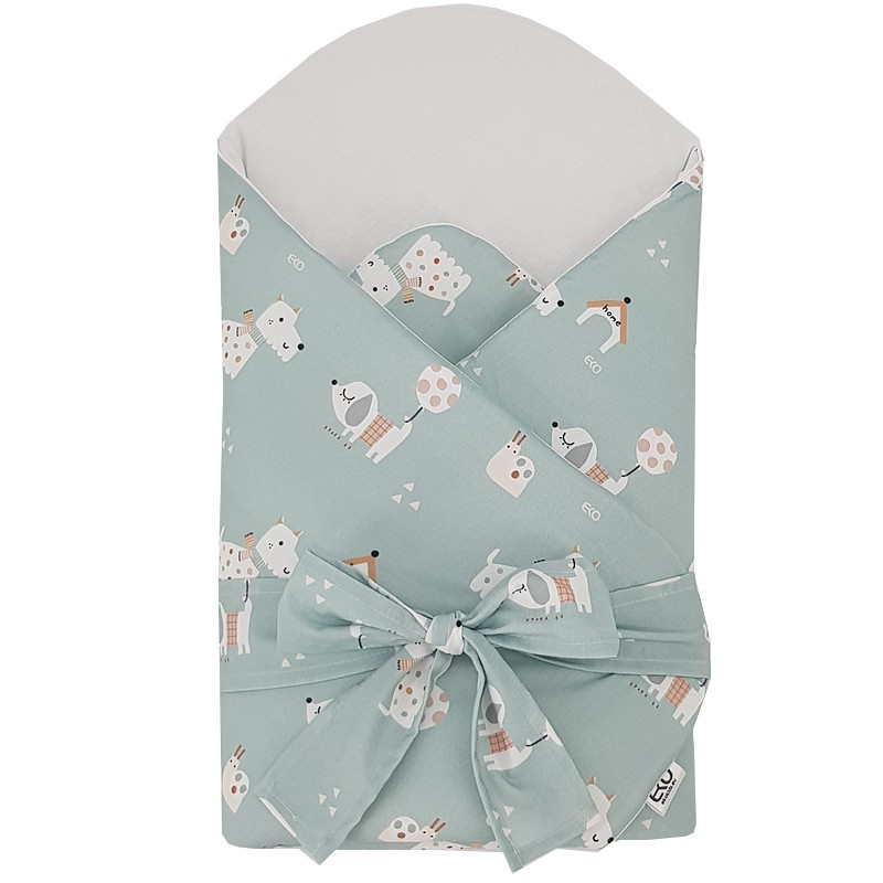EKO Bebújós Takaró Pamutból Kivehető Kókusz Betéttel és Masnival Dogs Mint 75x75cm - Biztonságos Pólyázáshoz és Nyugodt Pihenéshez