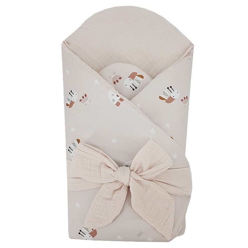 EKO Muszlin Pólya Kivehető Kókusz Betéttel Bees Muszlin Bézs 75x75cm - Biztonságos Pólyázáshoz és Nyugodt Pihenéshez