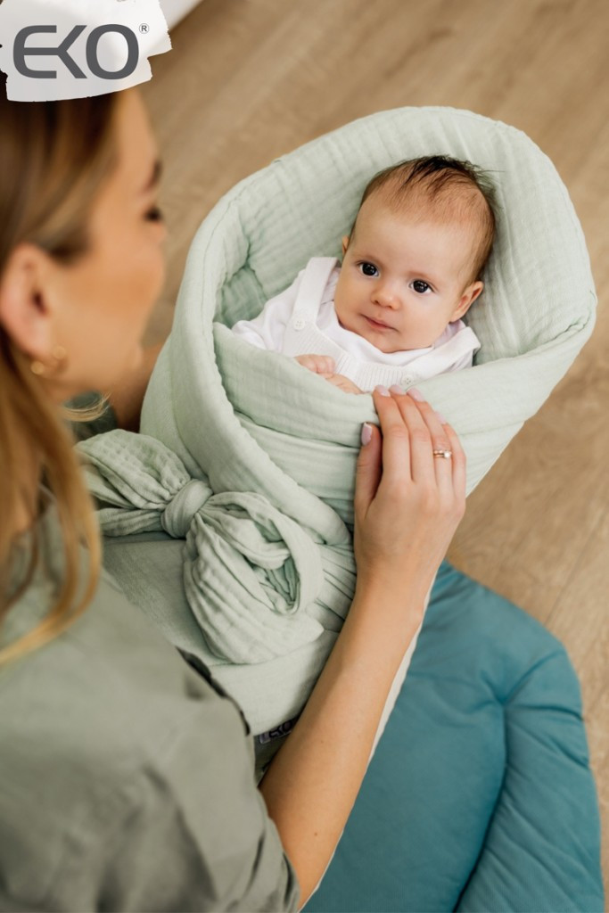 EKO Muszlin Pólya Menta Színben Merevítés Nélkül 75x75cm - Biztonságos Pólyázáshoz és Nyugodt Pihenéshez
