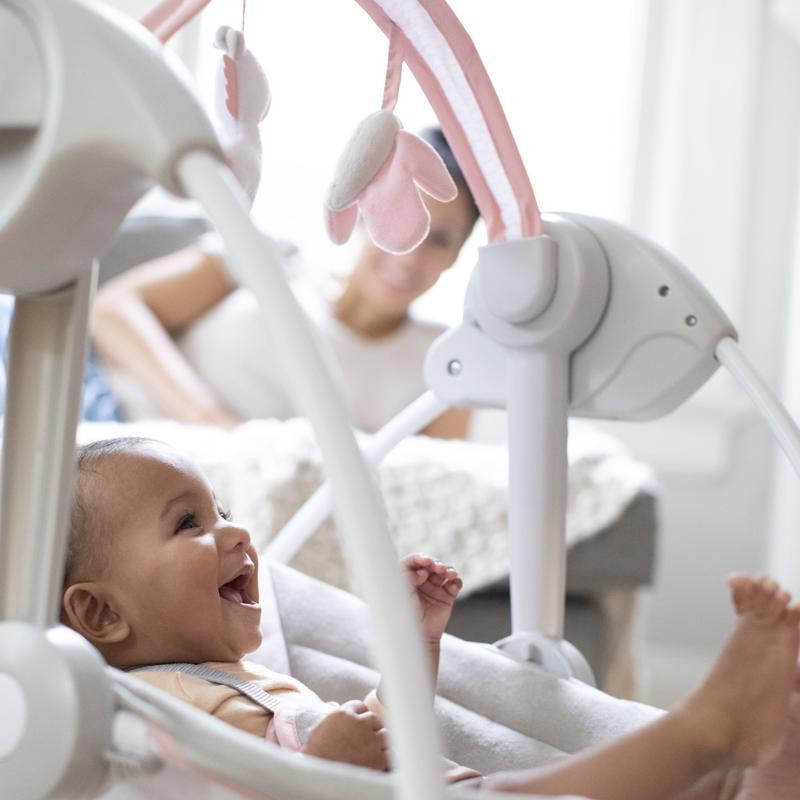 Ingenuity Comfort 2 Go™ Flora the Unicorn Hinta Dallamokkal Újszülött Kortól - 6 Hintázási Sebesség, 12 Dallam, Összecsukható Kivitel, 9kg Súlyhatárig