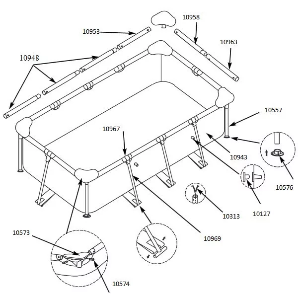 A vízszintes keretelem cseréjét javasoljuk, ha észreveszi, hogy a medence váza meggyengült, deformálódott, vagy akár repedéseket, töréseket tapasztal ezen a ponton. A gyors és szakszerű alkatrészcserével megelőzhetőek a további szerkezeti problémák, és garantált, hogy a medence szerkezete továbbra is biztonságos marad.