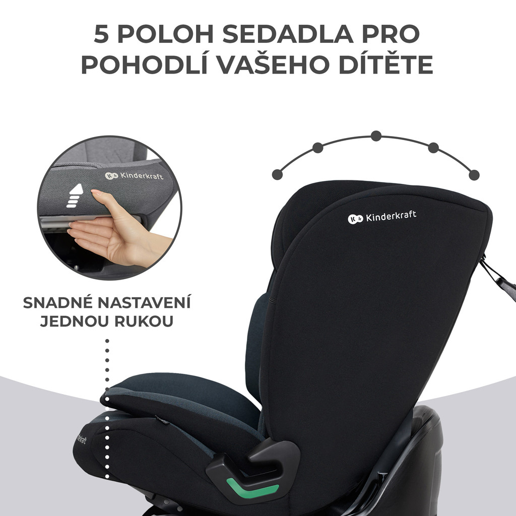 Kinderkraft Oneto3 i-Size Autósülés 76-150cm Grafit Fekete - ISOFIx, Top Tether, Állítható Fejtámla és Oldalvédelemmel, 15 Hónapostól 12 Éves Korig