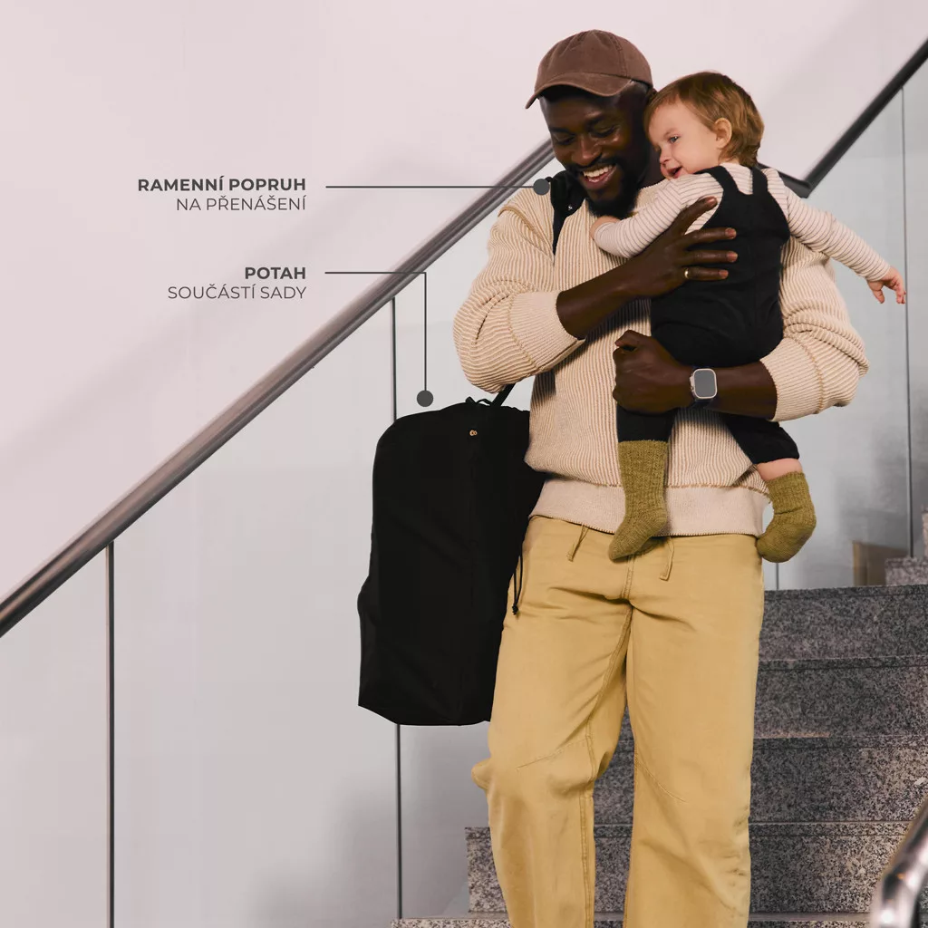 • Védőhuzat és fix vállpánt – tisztán tartja a babakocsit és kényelmes hordozást biztosít