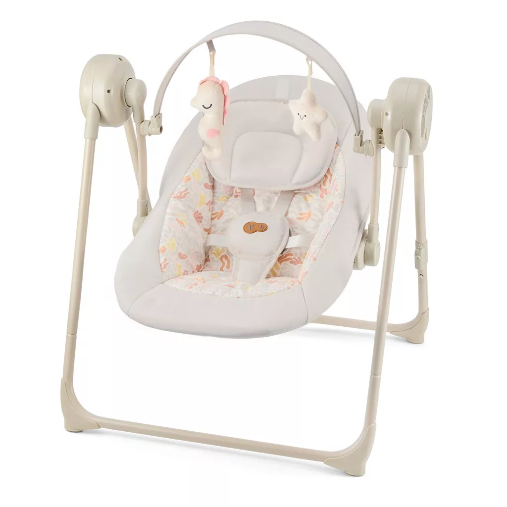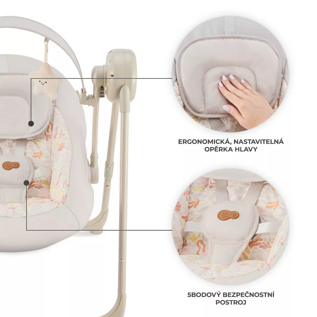 Kinderkraft Swingee Elektromos Baba Hintaszék, Bézs - Csendes Működésű, Több Sebességfokozatú és Időzítővel Ellátott Babaléghinta Újszülött Kortól, 9kg-ig
