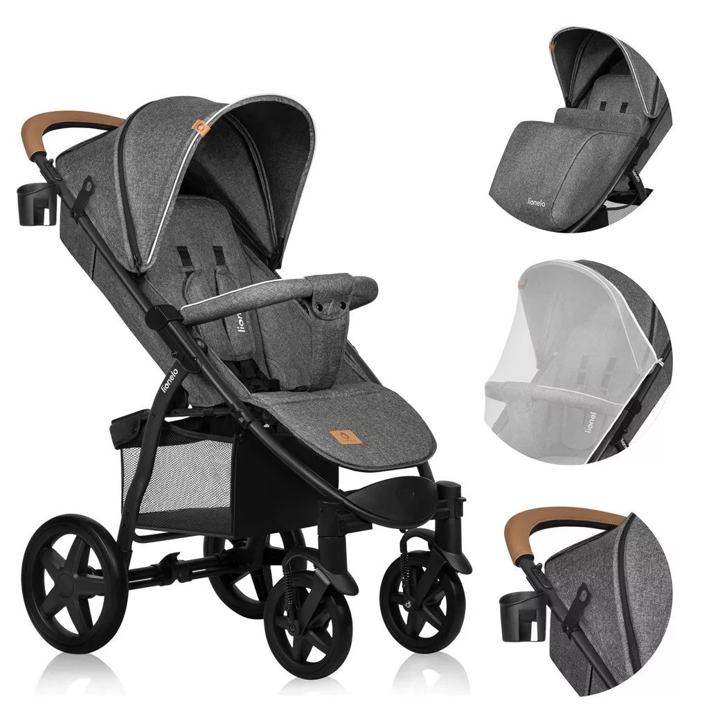 Lionelo Annet Plus Sport Babakocsi Stone Caramel - Nagy Kerekekkel, Kényelmes Sport Babakocsi Utazáshoz