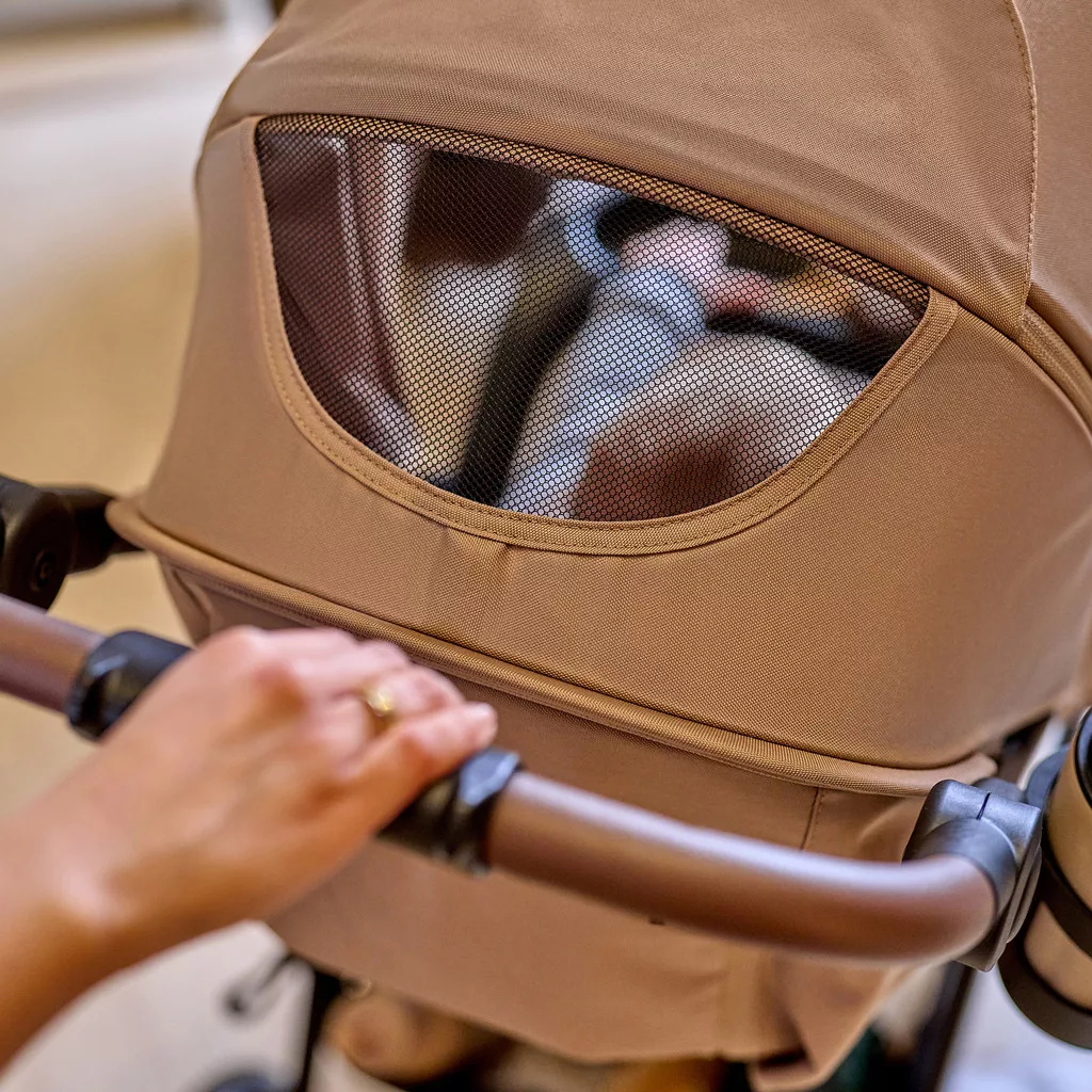 • Szervező és tárolók: A babakocsi tartozéka egy tágas, könnyen hozzáférhető bevásárlókosár, egy stílusos táska, valamint a fogantyún elhelyezett szülői szervező. A háttámlán található tépőzáras zseb pedig azonnali hozzáférést biztosít az értéktárgyakhoz.