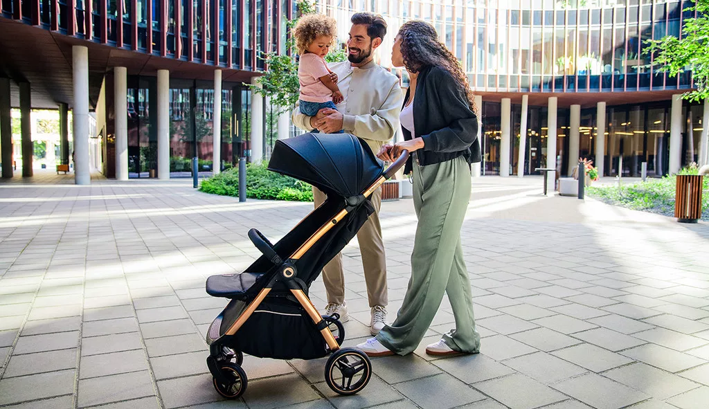 • Auto-folding rendszer: A forradalmi technológia lehetővé teszi, hogy egyetlen gombnyomás és a biztosíték kioldása után a babakocsi automatikusan, külső segítség nélkül kompakt méretre csukódjon. Mindez egy kézzel is könnyedén elvégezhető.