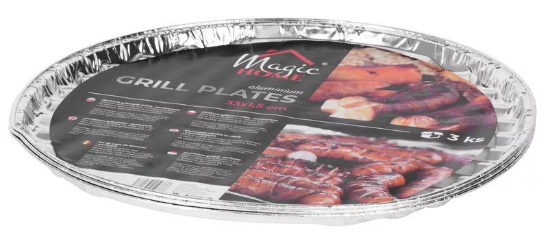 A MagicHome Kerek Alumínium Sütőtálca egy 3 darabos szett praktikus és egyszerhasználatos konyhai eszköz, amely ideális grillezéshez és sütéshez. Ez a tömör alumíniumból készült tálca kerek formájával és recés felületével megkönnyíti a kisebb húsok, zöldségek vagy egyéb ételek grillezését, miközben megakadályozza azok leesését a grillrácson át a parázsra.