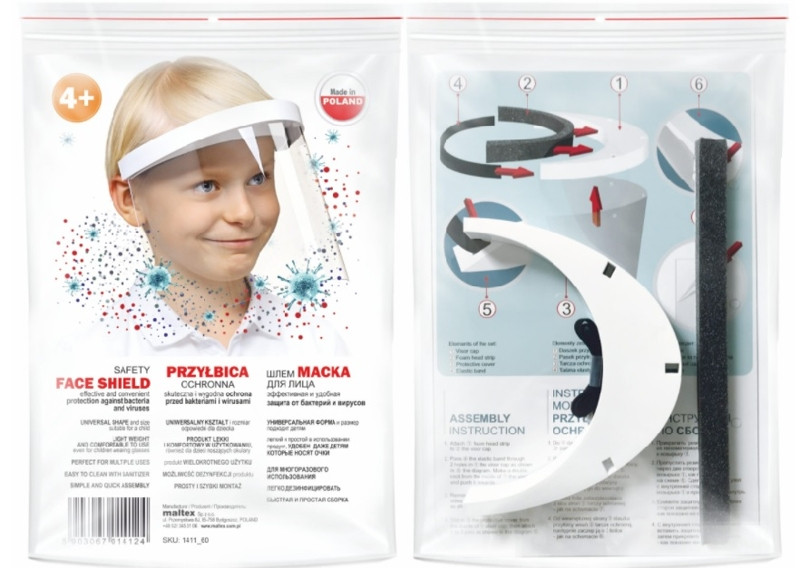 A Maltex Gyermek Védő Arcpajzs kifejezetten a 4 éves kortól használható gyermekek számára készült, hogy hatékony és kényelmes védelmet biztosítson a baktériumok és vírusok ellen. Ergonomikus, univerzális formájának köszönhetően tökéletesen illeszkedik a kicsik arcára, és szemüveget viselő gyermekek számára is kényelmes választás. Könnyű súlya miatt hosszabb ideig is kényelmesen viselhető, miközben zavartalan mozgást biztosít.