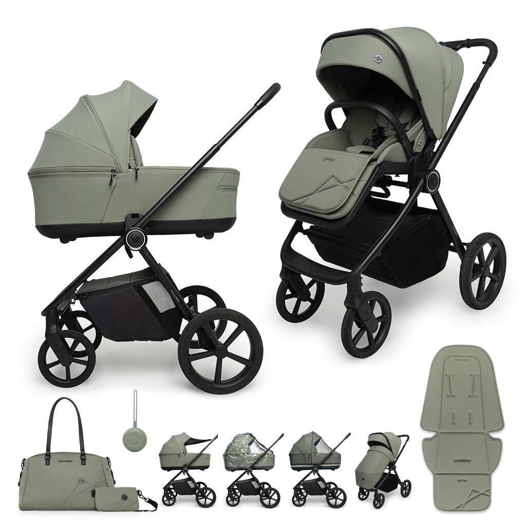 Muuvo One 2 az 1-ben Kombinált Babakocsi Olíva - Prémium Babakocsi Mózeskosárral és Sportüléssel, Újszülött Kortól