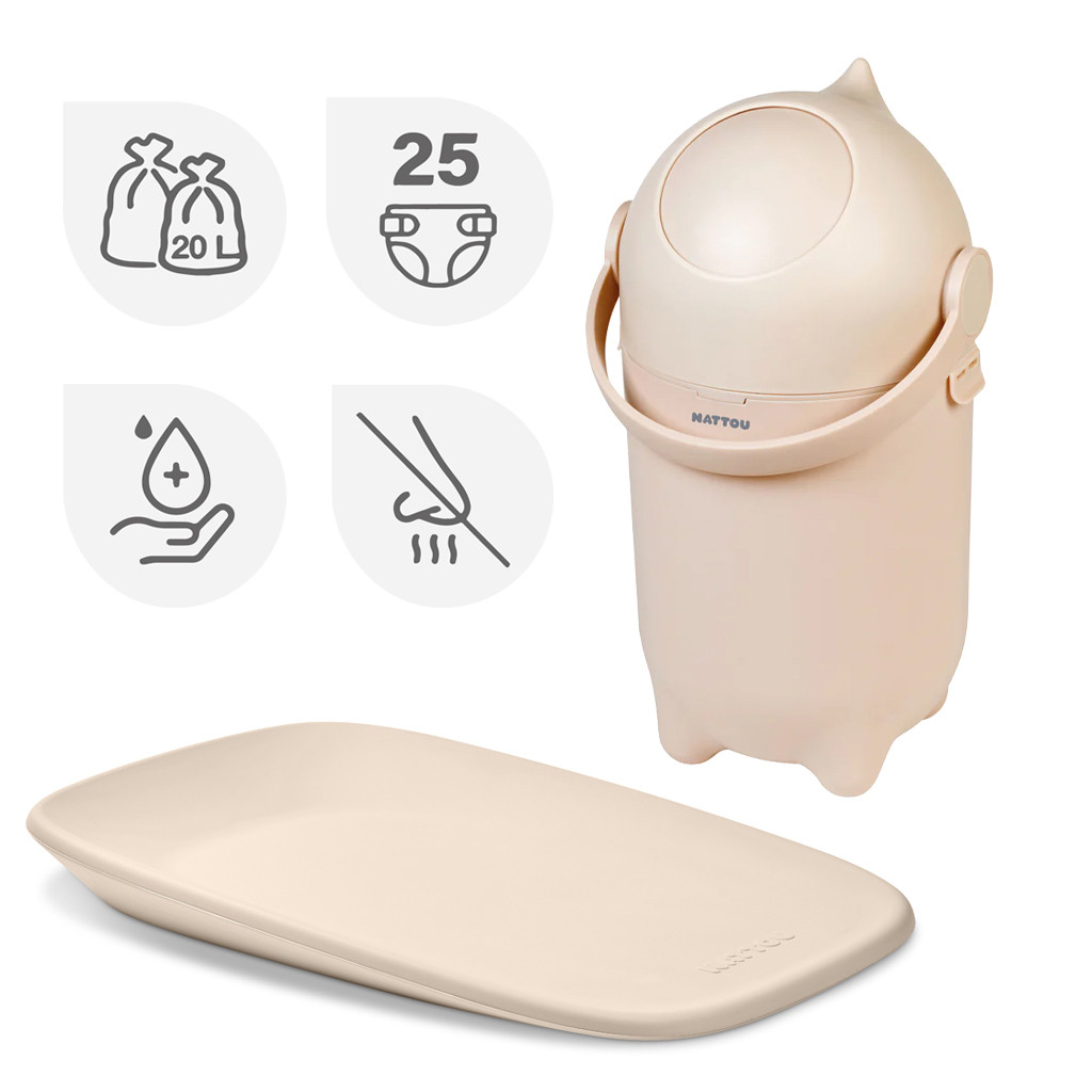 A Nattou Softy pelenkázó alátét és a Nattou Dropy pelenkakosár tökéletes kombinációt alkotnak a higiénikus, kényelmes és gyors mindennapi pelenkázáshoz. A Softy alátét innovatív, BPA‑mentes PU habból készült, amely huzat nélkül is használható, vízlepergető, gyűrődésmentes és rendkívül higiénikus. A Dropy pelenkakosár speciális szagzáró rendszerével biztosítja, hogy a kellemetlen szagok ne jussanak ki a helyiségbe, miközben egy kézzel is könnyedén kezelhető.