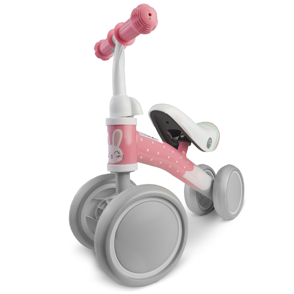 Száguldjon játékosan gyermeke a Nukido NK-600 futóbiciklivel! Ezt a négy stabil kerékkel ellátott járgányt kifejezetten a legkisebbeknek tervezték, hogy már az első lépések után magabiztosan fedezhessék fel a mozgás örömét. A mindössze 1,72 kg-os, ultrakönnyű vázat a kicsik könnyedén tologatják, aminek köszönhetően gyorsan és játékosan fejlődik az egyensúlyérzékük, valamint a mozgáskoordinációjuk. A bájos rózsaszín, pöttyös és nyuszis dizájn azonnal elbűvöli a gyerekeket, miközben a lekerekített élek és a zárt szerkezet maximális biztonságot garantálnak a mindennapi játék során.