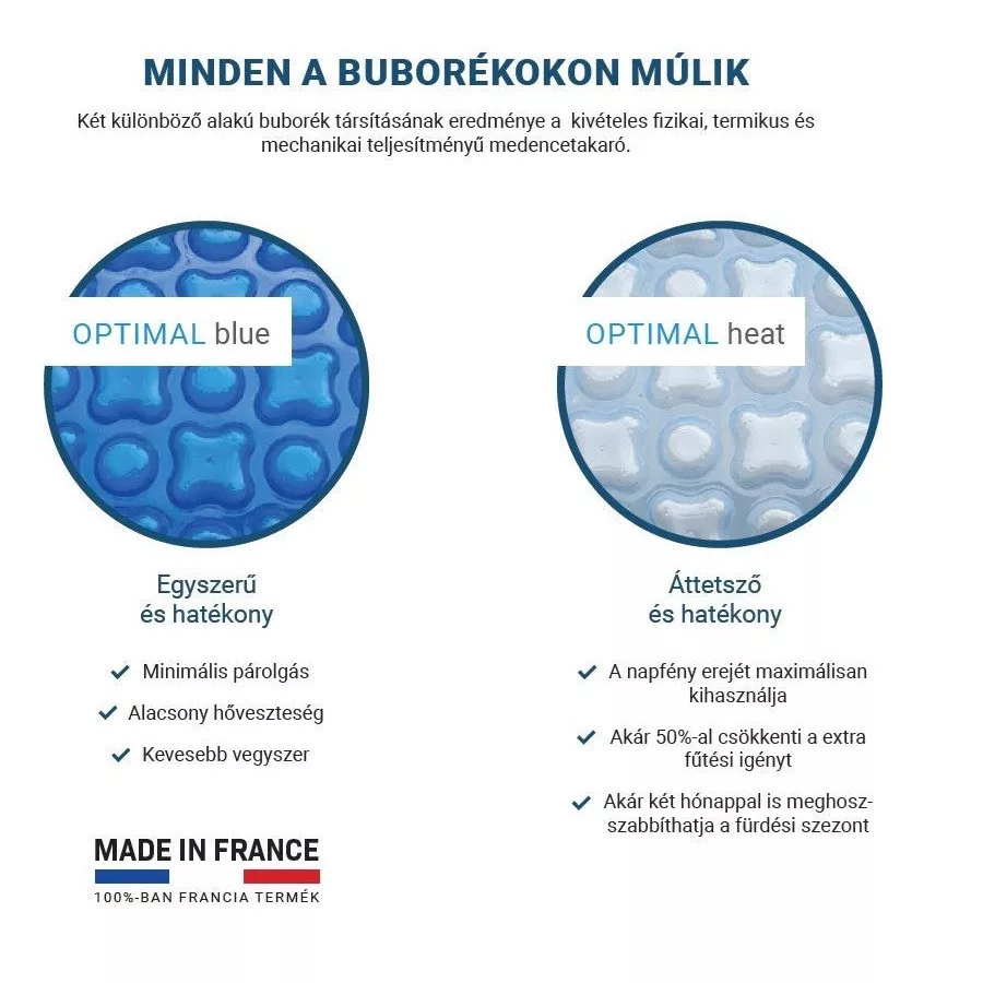 • Optimal Heat funkció: átengedi a napfényt a medence felé, ezzel akár 50%-kal mérsékli a fűtési igényt, és akár két hónappal meghosszabbítja a fürdési szezont
