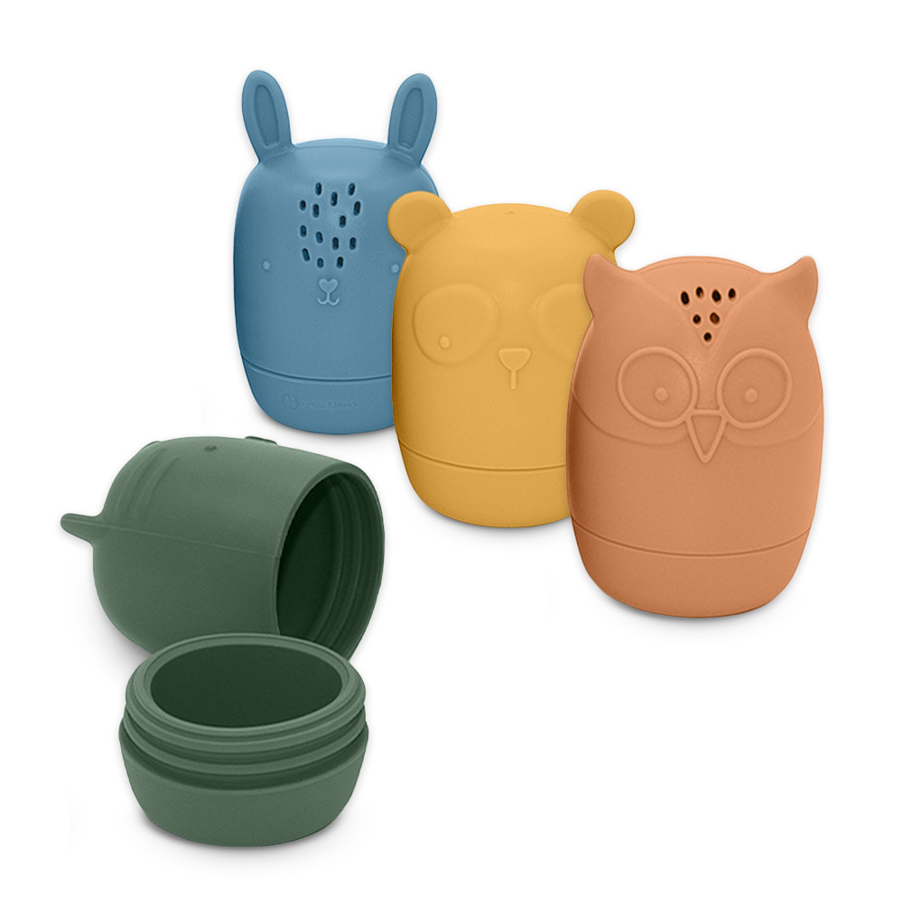 Az AMIGOS szilikon fürdőjátékok 4 színes állatfigurával (bagoly, nyúl, macska és panda) varázsolják el a legkisebbeket a fürdőidőben. A puha, BPA-mentes szilikonból készült játékok tökéletesek a babák számára, hiszen biztonságosak, fejlesztik az érzékeket és a motorikus készségeket. A vízzel tölthető állatokkal a fürdés még szórakoztatóbbá válik!