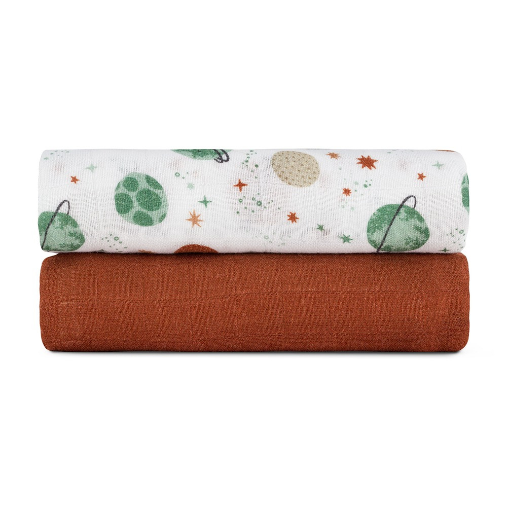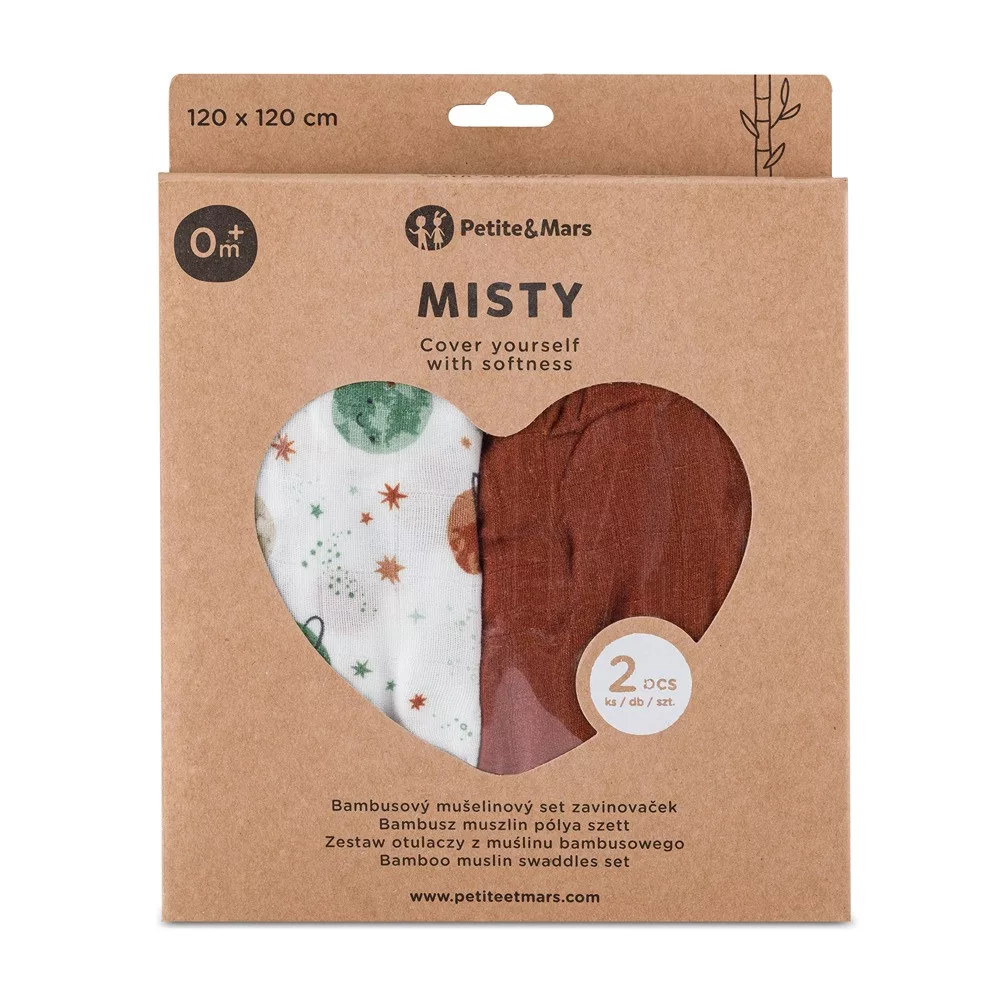 Petite & Mars Bambusz Muszlin Pelenka Szett 2db Misty Celestial Planets 120x120cm - Puha, Légáteresztő és Bőrbarát Pelenkák Újszülötteknek