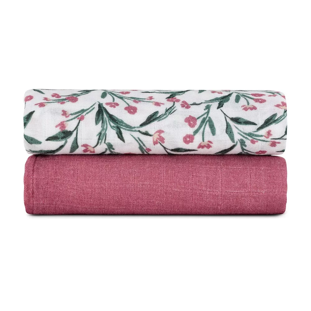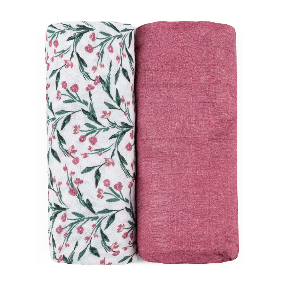 Petite & Mars Bambusz Muszlin Pelenka Szett 2db Misty Pink Meadow 120x120cm - Puha, Légáteresztő és Bőrbarát Pelenkák Újszülötteknek