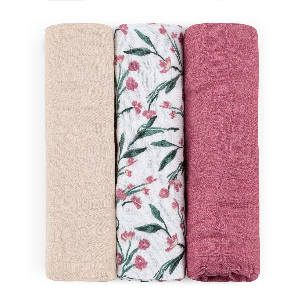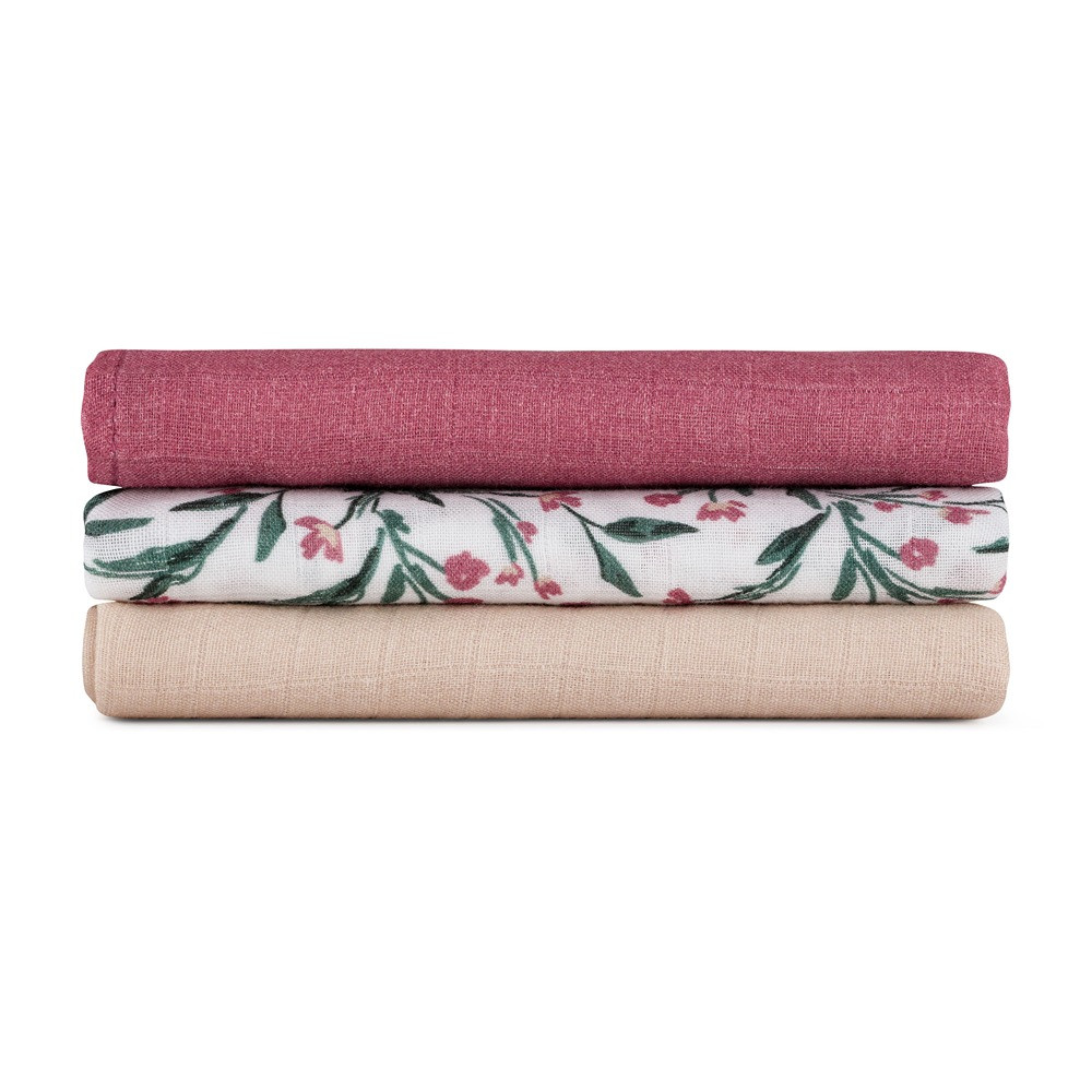 Petite & Mars Bambusz Muszlin Pelenka Szett 3db Moussy Pink Meadow 68x68cm - Puha, Légáteresztő és Bőrbarát Pelenkák Újszülötteknek