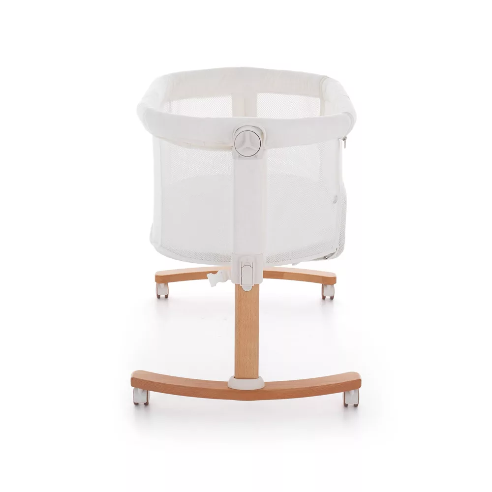 A kiságy kellemes krémszínben, puha plüss szegéllyel érkezik, így csodálatosan illeszkedik bármely elegáns belső térbe. A bükkfa konstrukció biztosítja a stabilitást, miközben megfelel a minőségi anyagokat és modern dizájnt kedvelő szülők igényeinek.