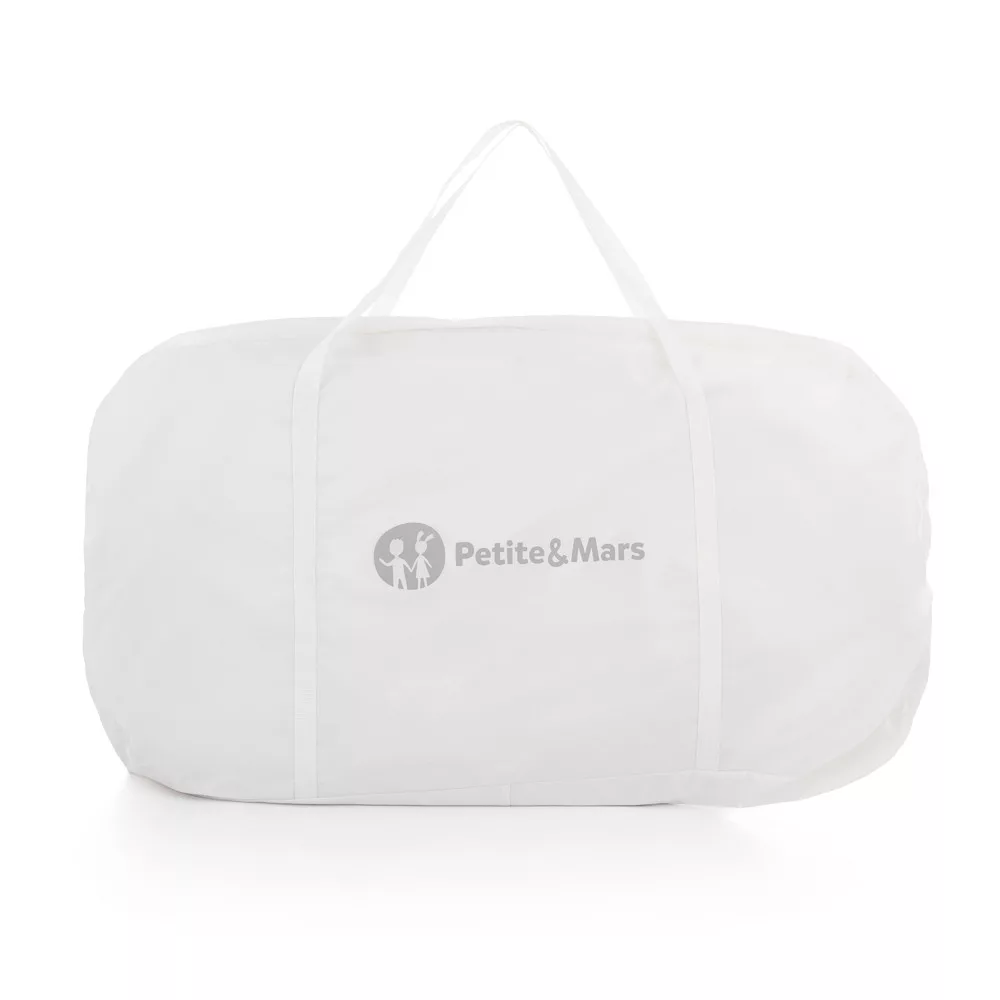 • Összecsukható és Hordozható: A kiságy összecsukható, így könnyen tárolható vagy a hozzá tartozó hordtáskában szállítható.
