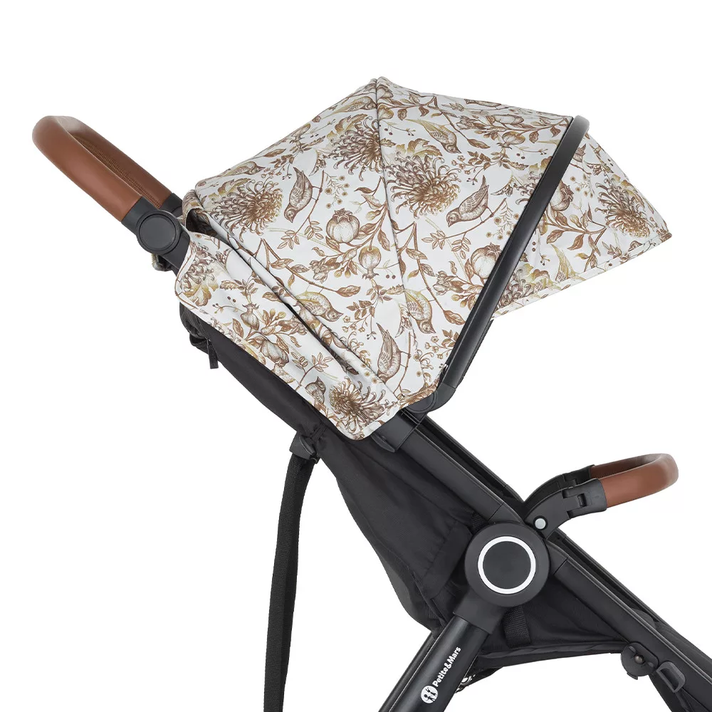Petite & Mars Napfénytető és Övvédő Street+ Limited 100 Elegant Birds - Stílusos UV-védelem és Kényelmes Övvédő Babakocsikhoz