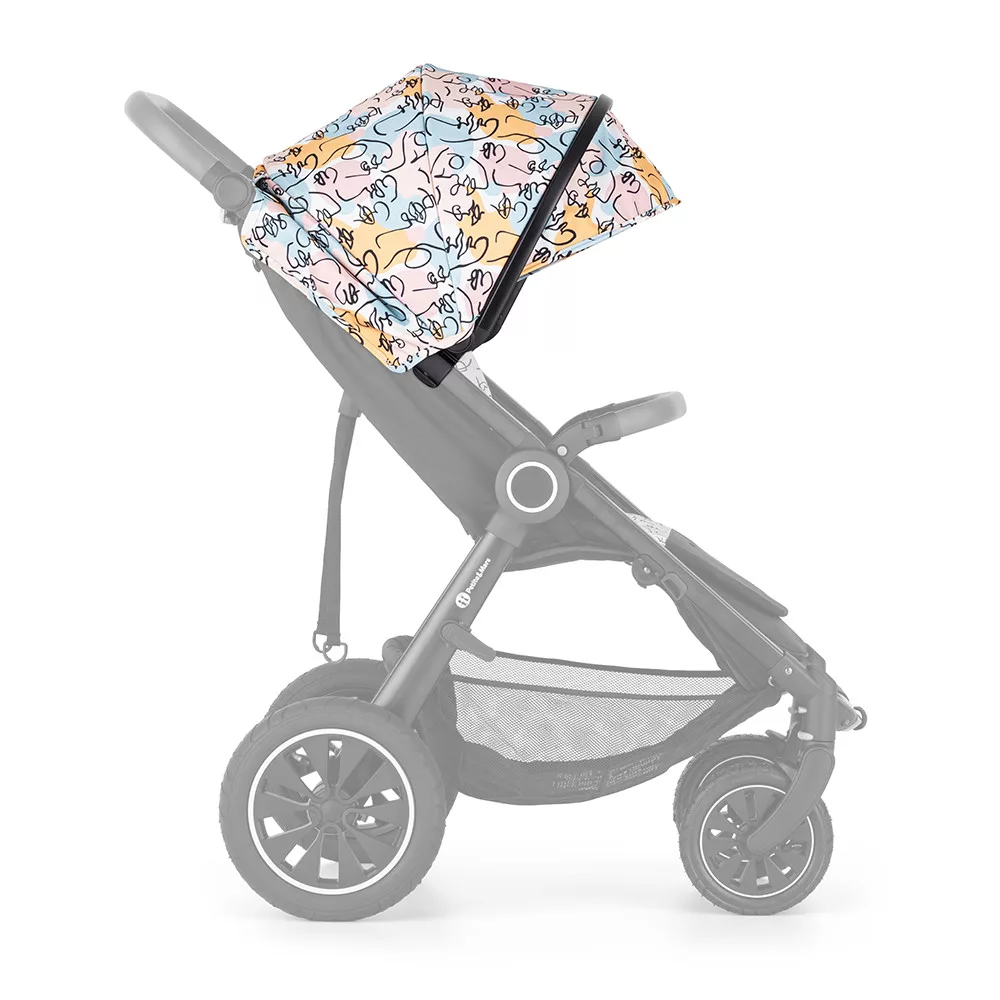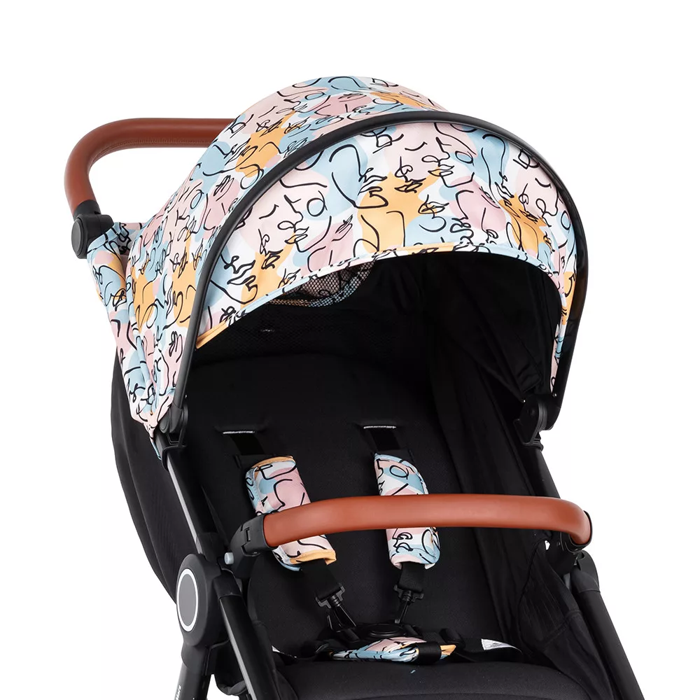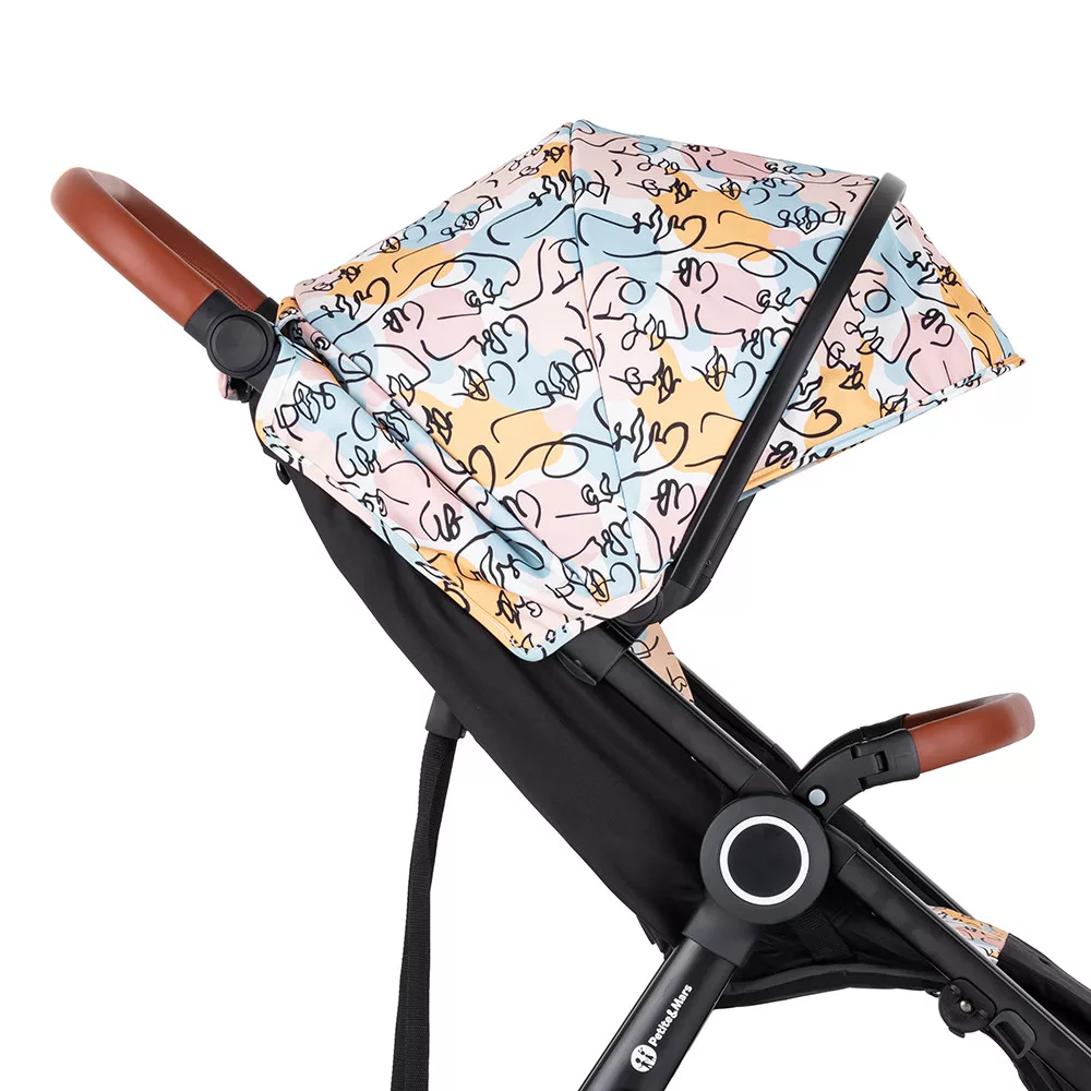 Petite & Mars Napfénytető és Övvédő Street+/Street2 Limited 100 Faces - Egyedi Arc Mintás, Hatékony UV-védelem és Kényelmes Övvédő Babakocsikhoz