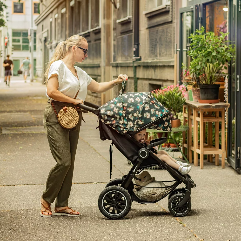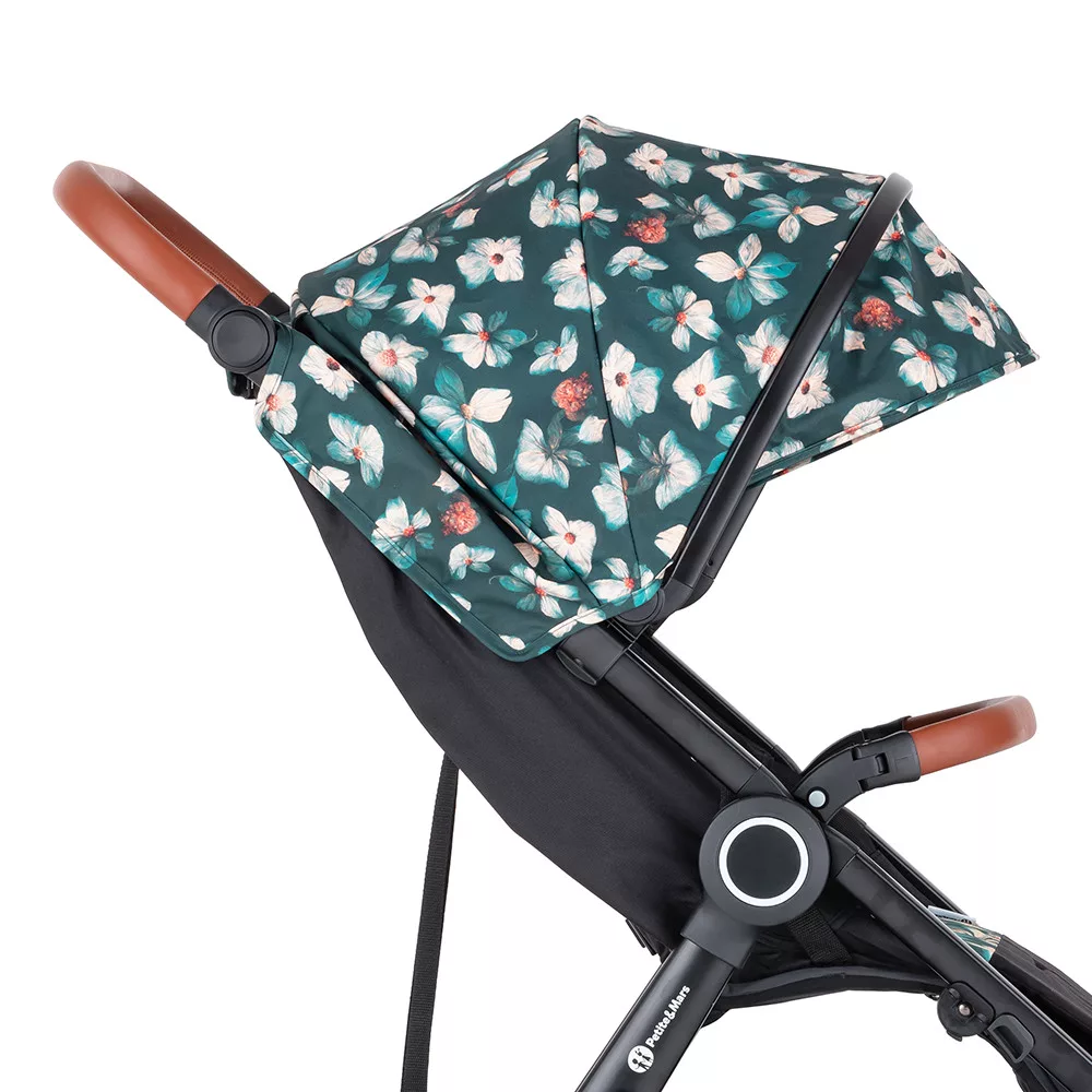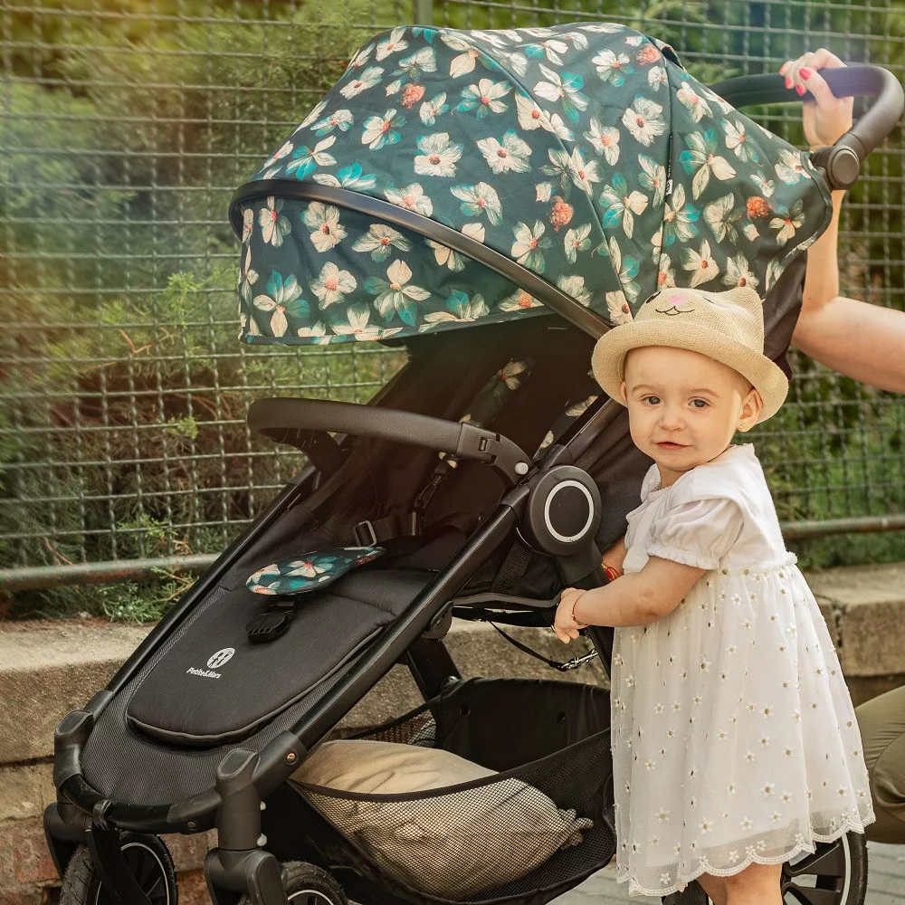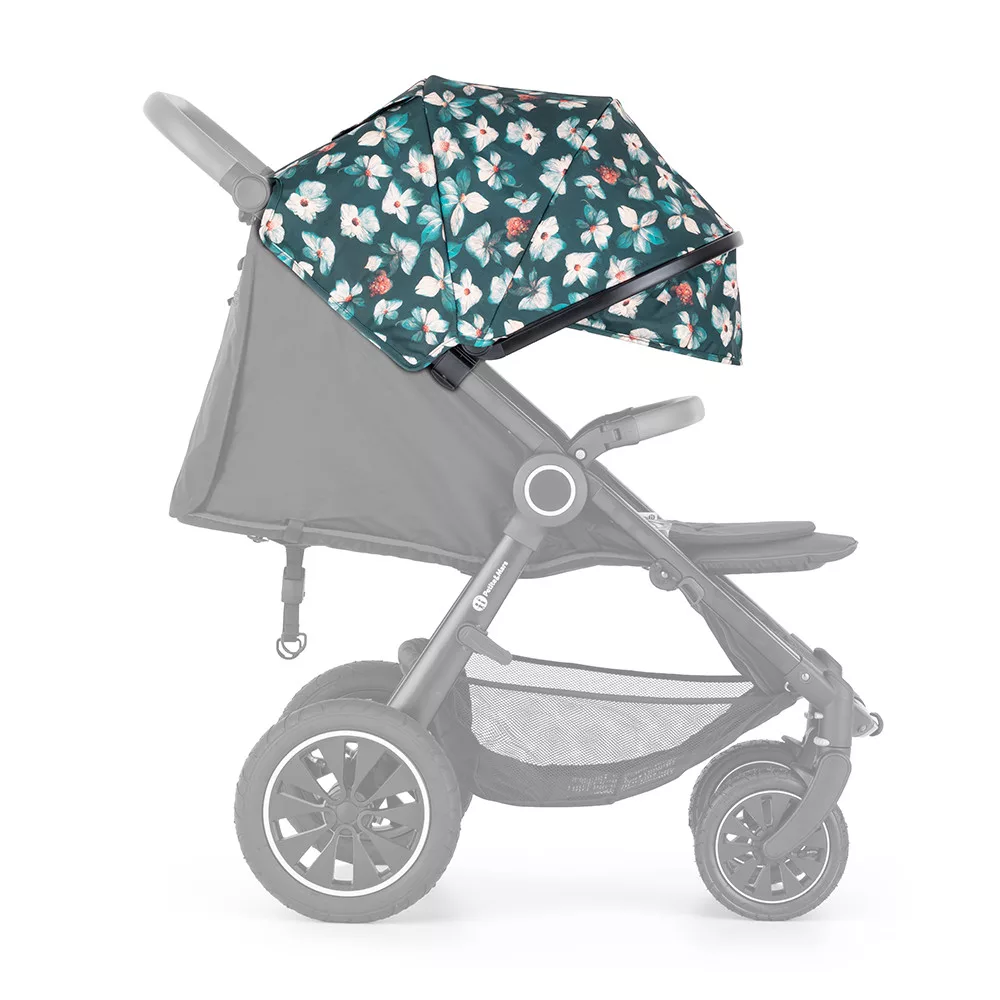 Petite & Mars Napfénytető és Övvédő Street+/Street2 Limited 100 Flowers - Virágmintás, Hatékony UV-védelem és Kényelmes Övvédő Babakocsikhoz