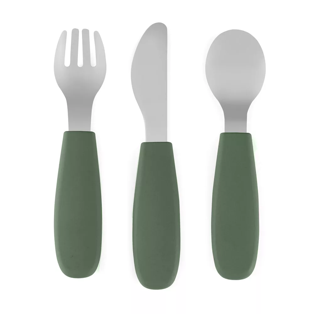 Petite & Mars Rozsdamentes Acél Evőeszközkészlet Take & Match Misty Green - Tartós, Praktikus és Stílusos Evőeszközök Babáknak 12 hónapos kortól