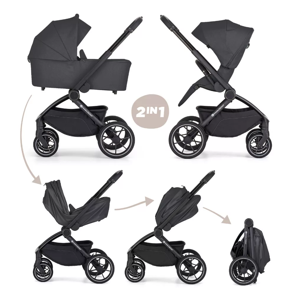 Petite & Mars SCOUT 2 az 1-ben Antracit Hold Kombinált Babakocsi - Prémium Kényelem, Sokoldalú Megoldás, Babával Való Mindennapokra