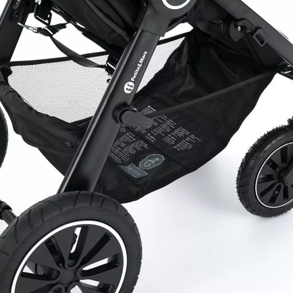 Petite & Mars Sport Babakocsi Street+ Air Black Limited 100 Roses - Légkerekes Kialakítás, Kényelmes Sétákhoz