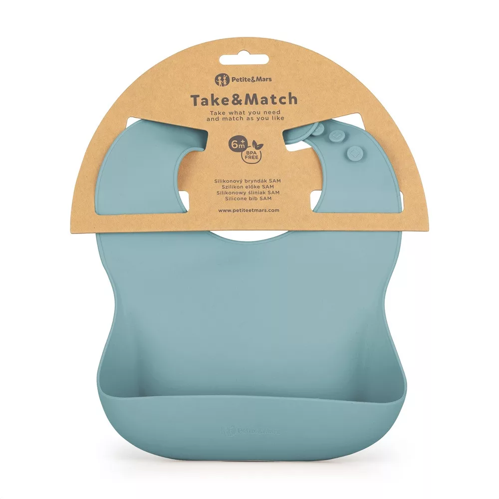 Petite & Mars Take & Match Szilikon Előke Frosted Sky - Állítható, BPA-mentes és Könnyen Tisztítható Előke 6 Hónapos Kortól