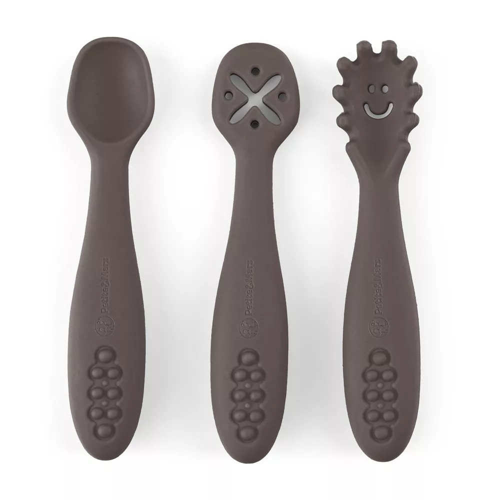 Petite & Mars Take & Match Szilikon Gyakorló Kanál Szett 3db Bitter Cocoa - Puha, BPA-mentes és Könnyen Fogható Készlet 6 Hónapos Kortól