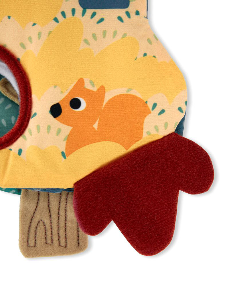 • Ősz oldal: 2 mókus illusztrációja és egy levélfül, amelyen keresztül ki lehet kukucskálni – a kíváncsiság ösztönzésére