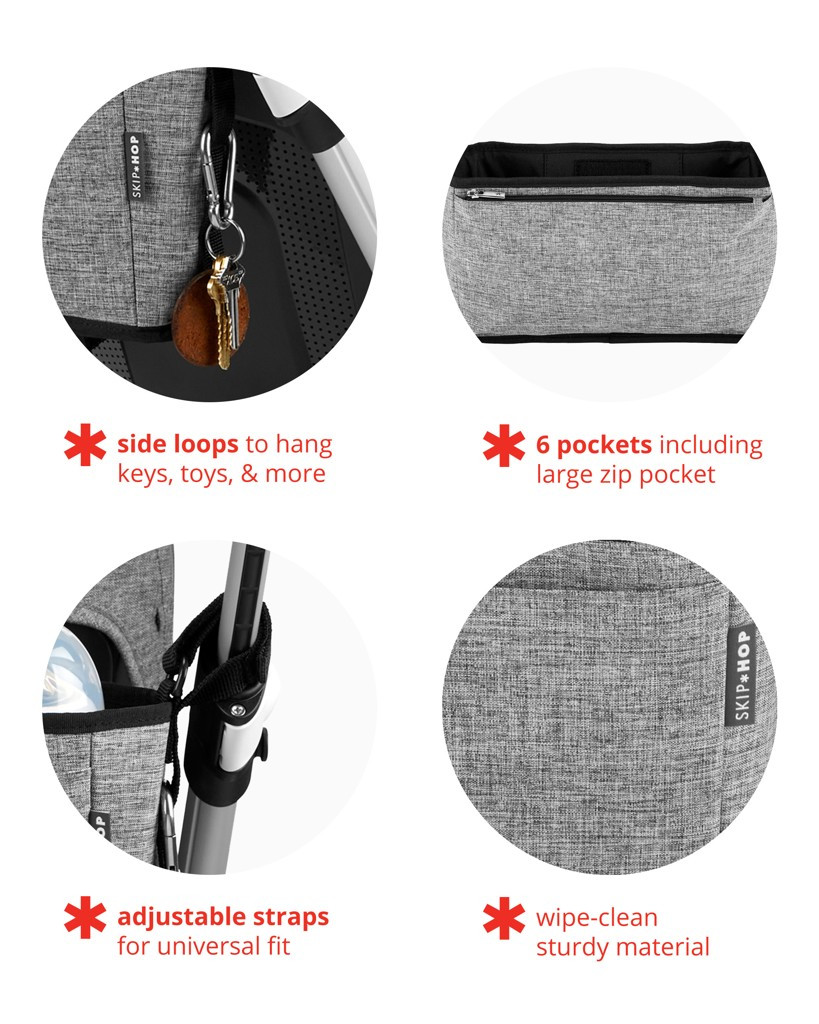 Vélemények Skip Hop Grab & Go Babakocsi Szervező Ultra Szürke Melange - Univerzális, Pohártartós és Praktikus Tároló Kiegészítő