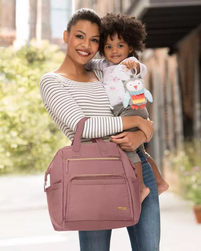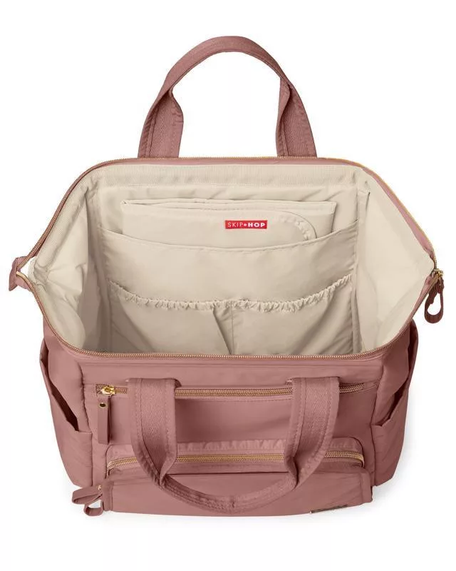 Skip Hop Mainframe Pelenkázótáska és Hátizsák Dusty Rose - Könnyű, Merevített Vázú és Tágas Baba-Mama Táska Pelenkázó Alátéttel és Rendezetten Pakolható Rekeszekkel