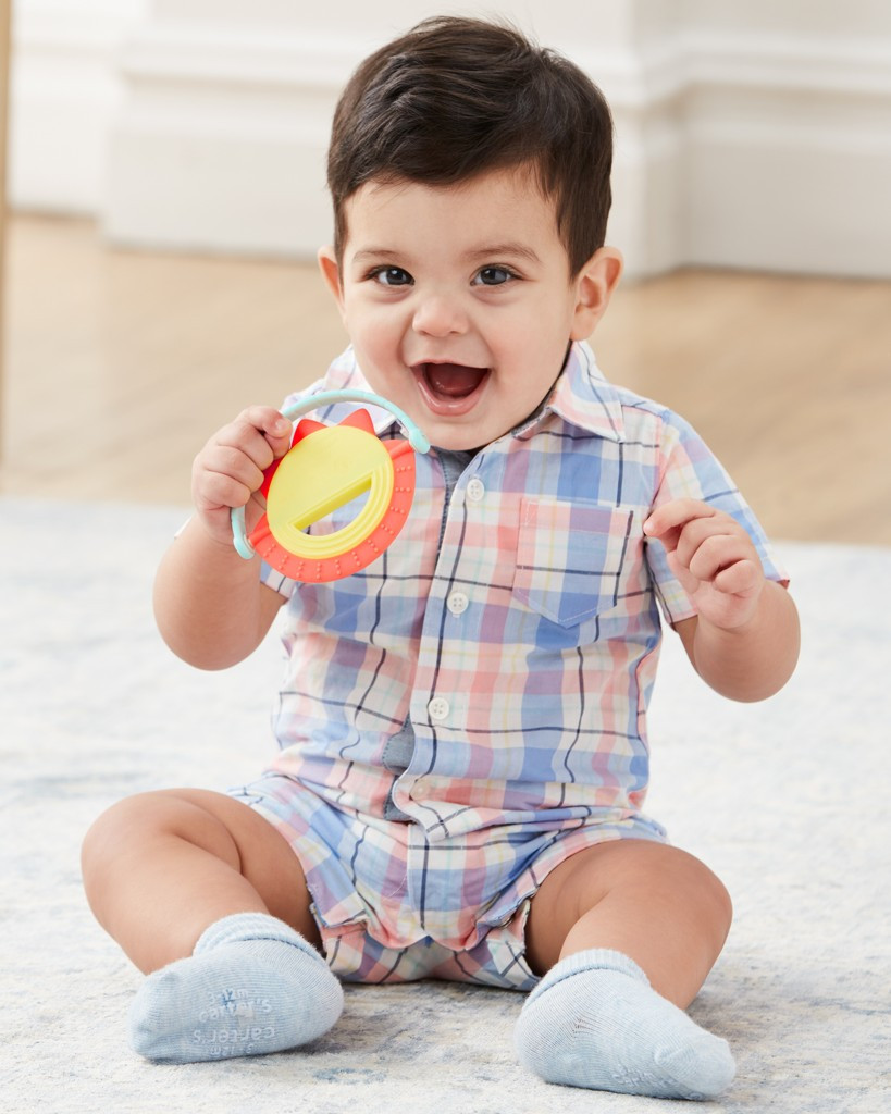 Ez a puha, biztonságos és fejlesztő rágóka tökéletes társ a baba első fogacskáinak megjelenésekor, ahol a megnyugtatás és a játék kéz a kézben jár.