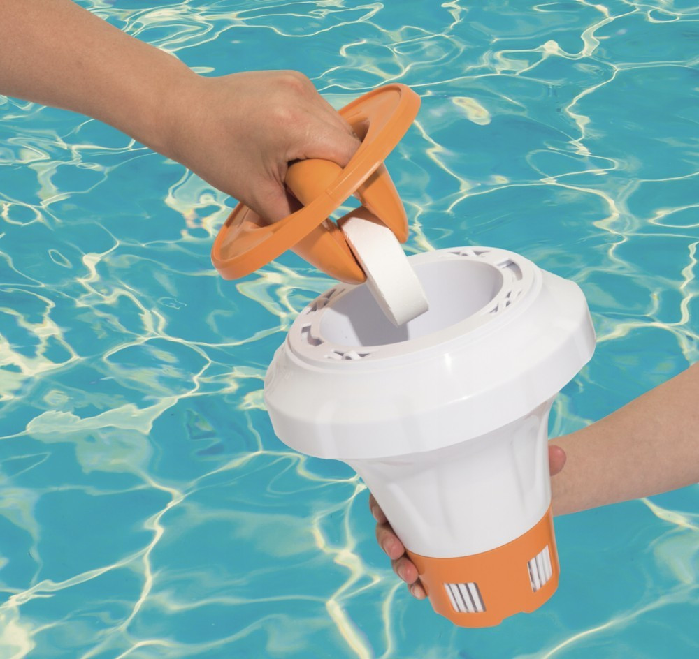 • A tablettát ne dobjuk közvetlenül a medencébe, mert elszínezheti a burkolatot.