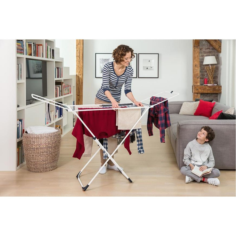 Vileda Universal Ruhaszárító 18 Méter Szárítási Terület Fehér x-Alakú Vázzal Kinyitható Szárnyakkal Keskeny és Összecsukható Kialakítással - Praktikus Szárítás és Helytakarékos Tárolás